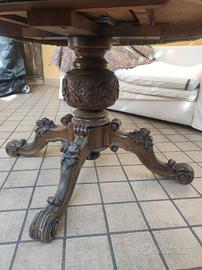 tavolo tondo in legno intarsiato cm.120 allungabile. non spedisco ma è ad un piano terreno