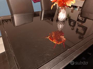 Vendo tavolo da pranzo di colore nero in vetro/metallo allungabile fino a 10 pax massimo con 6 sedie nere in ecopelle per rinnovo stanza.