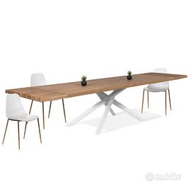 Tavolo da pranzo allungabile Norbe Alexander misure 160/240 x 90 in legno naturale con bordo massello e meccanismo allungabile. Gambe in metallo vernice epossidica a forno bianca. Acquistato da Maison du Monde settembre 2024. Condizioni perfette