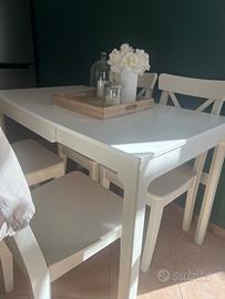 Tavolo allungabile in legno bianco chiuso 69x80 e aperto 69x 120