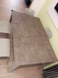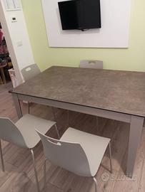 tavolo in ceramica 90×140 4 prolunghe fino a 380cm 14/16 posti 4 sedie abbinate il tavolo presenta una piccola seccatura come in foto