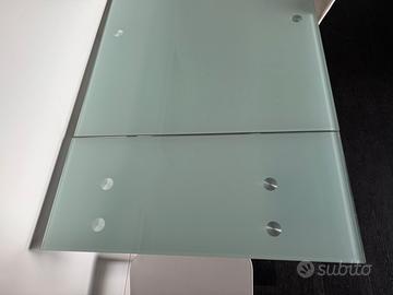 Tavolo Allungabile Rettangolare con Struttura in Acciaio Verniciato e Piano in Vetro Acidato – Bianco - Le dimensioni sono: L-110(aperto 170cm) H-75cm P-70cm 2 prolunghe da 30cm ciascuna. + 4 Sedie NENÉ Design di Paolo Venier Bianche