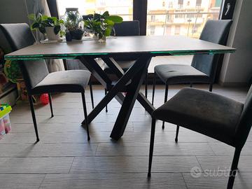 incluse nel prezzo 4 sedie abbinate lavabili, della stessa marca e colore del piede del tavolo.