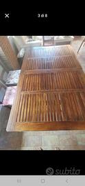 Vendo tavolo da esterno in teak massiccio, forma rettangolare, allungabile da 180 a 240 cm di lunghezza x 110 cm di larghezza, prolunga a farfalla. Mai tenuto all esterno ma in veranda. Ottime condizioni. Ritiro a Pomezia.