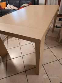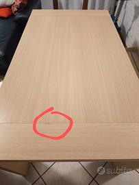 tavolo allungabile 160x90 allungabile a 210 rovere naturale con una piccolissima imperfezione segnata in foto.Il tavolo non è mai stato usato ed è ancora imballato. Montato solo per fare le foto