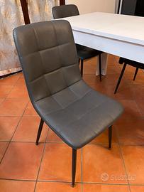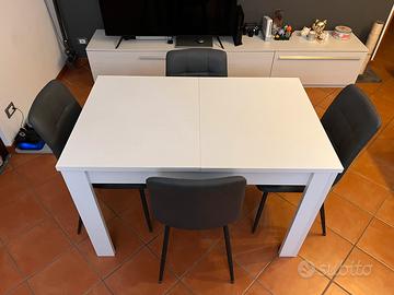Vendo tavolo allungabile fino a 6 persone per sala da pranzo in legno bianco ottime condizioni completo di sedie imbottite anch’esse in ottime condizioni in ecopelle color grigio scuro (complete di gommini con feltro).