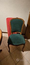 Le sei sedie abbinate, anch’esse in legno massello, presentano schienale lavorato in stile classico e seduta comoda, in ottime condizioni strutturali.