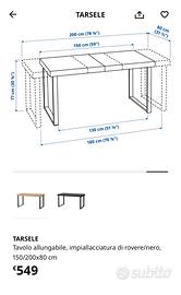 Tavolo allungabile IKEA Tarsele 150/200x80. Il tavolo si allunga in due semplici mosse, sbloccando i fermi posti sotto di esso e inserendo l’allunga posta al suo interno. Comprato 2 anni fa, praticamente inutilizzato.