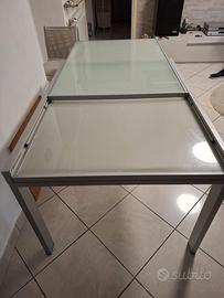 Tavolo allungabile in acciaio e vetro temperato. Misure tavolo chiuso: lunghezza 123 cm, larghezza 90 cm, altezza 74 cm Misura tavolo allungato: lunghezza 246 cm