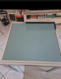 tavolo allungabile cucina in vetro e alluminio stupenda mai usata misura da chiusa 90x90 cm misura da aperta 180x90 disponibili anche 6 sedie o 4 20 euro ciascuna le sedie hanno qualche segno di usura per altre info e dettagli contattatemi