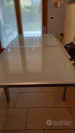 vendo tavolo 90x90 allungabile 180x90 .. ripiano in vetro, struttura grigio satinato.