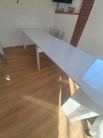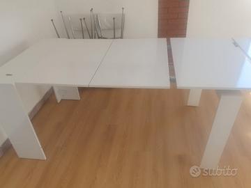 Vendo x inutilizzo e per poco spazio tavolo consolle allungabile fino a tre metri.. Misure da chiuso 50cm x 80 di altezza. E larghezza 90 cm Dotato di 5 plance ognuna lunga 50 cm.. Colore bianco effeto lucido...