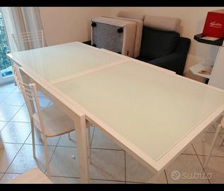 Vendo tavolo allungabile di mondo convenienza in metallo bianco e vetro + 4 sedie. Misure chiuso 90x90, allungabile 180x90