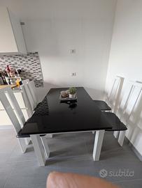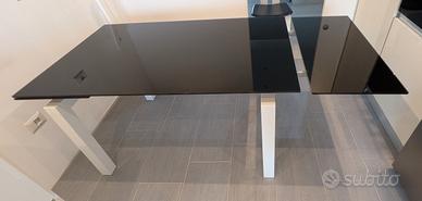 Tavolo allungabile vetro temperato nero simil Calligaris Airport da 6 a 10 persone in ottime condizioni. Larghezza 85cm. Altezza 75cm. Lunghezza chiuso 140cm 6 posti. Lunghezza aperto 1 lato 180cm 8 posti. Lunghezza aperto totale 220 10 posti Trasporto a carico acquirente