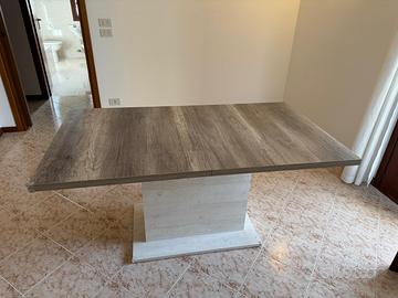 Tavolo allungabile Volterra (Conforama) con base in pino sbiancato e top in rovere anticato, con un piccolo movimento si allunga da 160 a 200 cm e accoglie comodamente fino 8 persone. Tavolo molto saldo, gli incastri somo precisi e non ci sono giochi, sia con tavolo aperto (200cm) sia con tavolo chiuso (160cm). Il tavolo è usato ma il piano non presenta segni d'uso. Colore: Legno bianco Materiale: Laminato Posti: 8 Profondità (cm): 90 Altezza (cm): 76.6 Larghezza (cm): 160/200