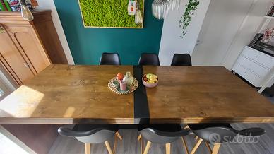 Vendesi tavolo alto in stile industrial, di produzione artigianale e unico. Solido e di grande impatto scenografico, completo di 6 sgabelli coordinati e pensile sopra il tavolo.