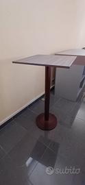 Tavolo da bar alto composto da una colonna con base in colore bronzo satinato e da un top in laminato colore rovere. CM 60X60 Pezzi disponibili: 2