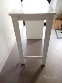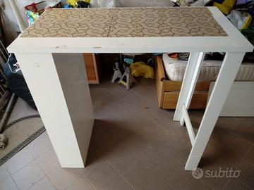 Tavolo Alto Bar Penisola Cucina misure lunghezza 112 x larghezza 57 x altezza 105 cm. cassa con mensole profonda 18 cm. qualche segno di usura a vernice e stata applicata carta adesiva con decori, smontabile ritiro su Grosseto o spedizione .