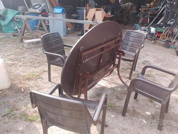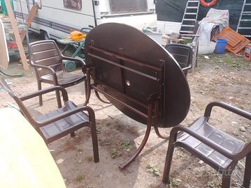 TAVOLO ALTO - TONDO CON 5 SGABELLI ALTI. CON SCHIENALE- SIMIL-PELLE. ben tenuto