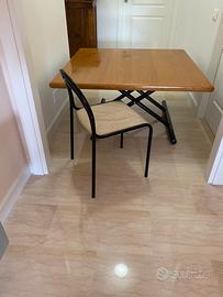 Tavolo ALTO/BASSO Tisettanta design Carlo Bartoli. Regolazione a tre altezze. Piano 120x120 cm. in legno chiaro e struttura in metallo colore nero. Ottime condizioni e ritiro a mano a carico e cura dell’acquirente