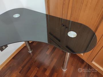 Vendo tavolo angolare in vetro marca Ovvio. Le misure sono 110cm di larghezza su entrambi i lati, profondità minima 40cm e altezza 76cmIn perfette condizioni e facilmente smontabile e rimontabile.