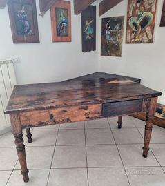 Tavolo tipo Madia anni 40, cassetto in pioppo con gambe in castagno. l'articolo è stato restaurato e riportato alla perfezione da un falegname della zona, un tavolo davvero importante per una sala da pranzo o un ristorante dalle vecchie tradizioni.