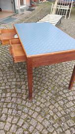 vecchio tavolo provenienti da ex uffici Sip, il piano è stato foderato con materiale plastico (eventualmente si può sempre togliere) con 2 cassetti misura 118 x 74 altezza 80. ideale come tavolo o scrivania.