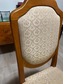 Tavolo anni ‘70 in legno massiccio, senza segni fi usura. Apribile. Con N. 6 sedie in legno imbottite