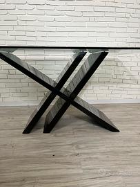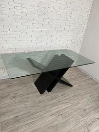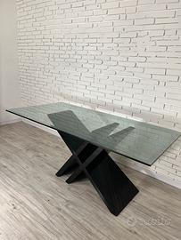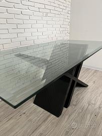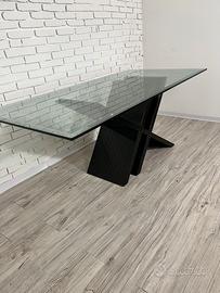 Tavolo anni '80 in MDF laccato nero lucido, con piano in vetro bisellato e diamantato di 1,2 cm di spessore.