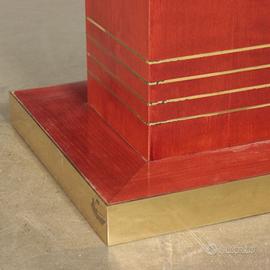 Tavolo da gioco. Legno impiallacciato tinto all'anilina con fascia e profili in