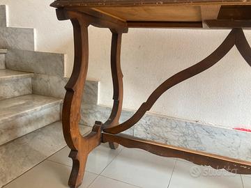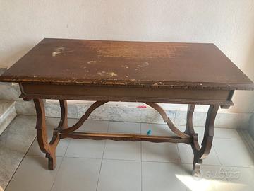 Vendo elegante tavolo antico in legno massello (noce/castagno) con caratteristiche gambe a lira sagomate e traverse centrali decorate, tipiche della tradizione ebanistica italiana di fine Ottocento. Un pezzo dal carattere autentico, ideale per: âSalotto o ingresso in stile classico o eclettico âScrivania vintage di grande personalitĂ âProgetto di restauro e rivendita con ampio margine di valorizzazione â Struttura solida e stabile â Gambe originali intatte con lavorazione artigianale pregiata â Bordo piano con listelli dentellati decorativi â ď¸ Piano necessita lucidatura/restauro (graffi e macchie superficiali) đĄ Con un semplice restauro del piano questo tavolo può valere 3â4 volte il prezzo richiesto. đ Ritiro in loco