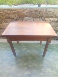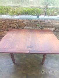 tavolo antico in noce massello, realizzato con lavorazione manuale, si apre con rotazione ed apertura a libro.