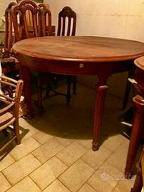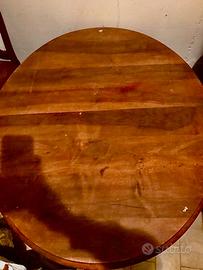 Tavolo ovale 130x115 cm allungabile fino a 270 cm circa. I ripiani per gli allunghi devono essere creati su misura. In noce massello, sano.