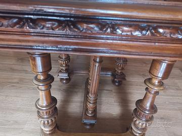 Tavolo allungabile francese antico fine 800 in noce misure 110 x 110 altezza 80 completo di prolunga e viti originali vendo per mancanza spazio. Non necessita di nessun lavoro. Prezzo Trattabile Prezzo indicativo Trattabile