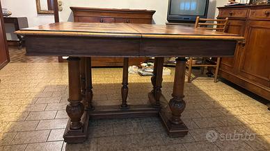 Vendo elegante tavolo antico in legno massello, risalente alla fine dell’Ottocento o ai primi del Novecento, con gambe tornite e scolpite in stile neorinascimentale.