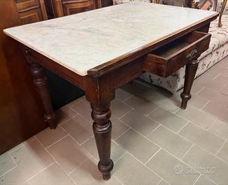 Bellissimo tavolo antico con piano in marmo cassetto e gamba tornita. Visibile presso il nostro mercatino dell’usato. Per maggiori info chiamare al 389 2089292.