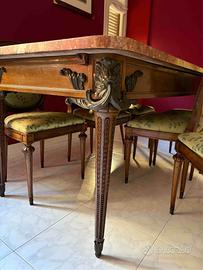 Tavolo con piano in marmo rosa perfetto con fregi laterali in ottone, vendita urgente . In omaggio madia !