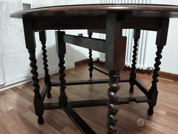 tavolo allungabile con alette primi 900 in legno massello con bandelle laterali aperto di forma ovale con gambe a torciglioni, restaurato. dimensioni aperto 148 per 105 altezza 74 chiuso profondità piano 54 per 105 di lunghezza.
