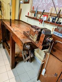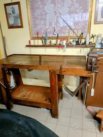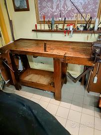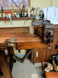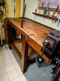 per il tuo arredo a te che sei un intenditore, oltre cento anni di storia, tavolo antico da ex falegname, morsa girevole, piano lavoro con sotto banco.
