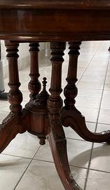 Tavolo antico da salotto completamente realizzato con legno pregiato ( noce americana - massello ) dai maestri falegnami dell' azienda Francesca Drexel. I 4 piedi del tavolo, sono intarsiati a mano.