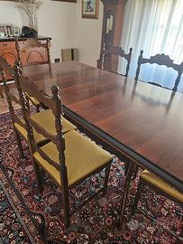 Tavolo antico e sei sedie foderate