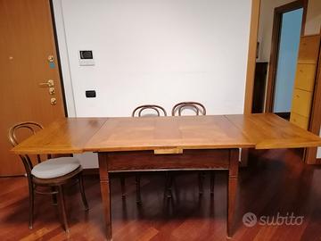 Misure da chiuso 87x118 cm, altezza 83 cm; ogni estensione misura 49x118 cm. Per 50 euro in più rispetto al prezzo esposto 6 sedie stile Tonet (anni 60) con paglia di Vienna - due da re-impagliare - e relativi cuscini di cotone bianco di piquet.