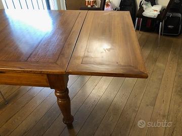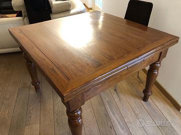Tavolo antico 110 x 110 cm, allungabile dai due lati di ulteriori 50 cm x parte, totale 210 cm x 110. Ben tenuto.