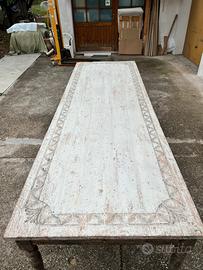 Bellisimo tavolo toscano in legno di abete massello con decorazioni , 4 cm di spessore restaurato dimensioni importanti 350x113 x80 sottofascia 67 cm ideale per 14 coperti , trasoprto in tutta italia per info non esitate a contattare il 3494092895 oppure visita barbirestauri