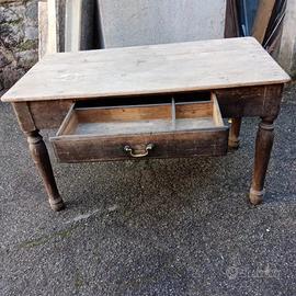 Tavolo metà Ottocento, in abete. Antiquariato. Piano: 137 x 72,5 cm. Altezza: 79 cm. Fascia: 60 cm. Ritiro in loco: non si consegna e non si spedisce.
