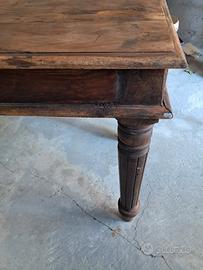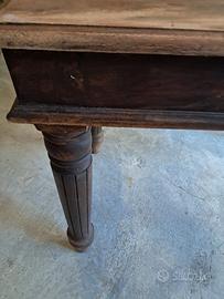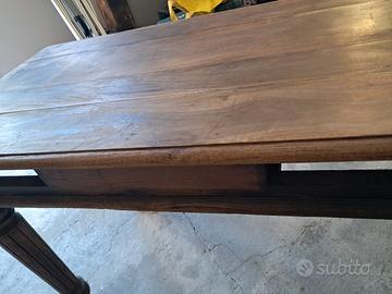 tavolo antico in legno di noce misura 60 P x 120 L 76 H cm con gambe lavorate con cipolla e 2 cassetti . con possibilita al restauro .