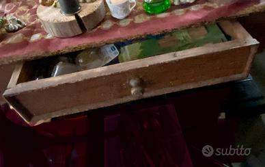 Tavolo antico della seconda metà del XIX secolo, in legno massello, probabilmente abete o noce. Presenta un cassetto frontale, tipico dei tavoli da lavoro da cucina. Conserva la patina originale.