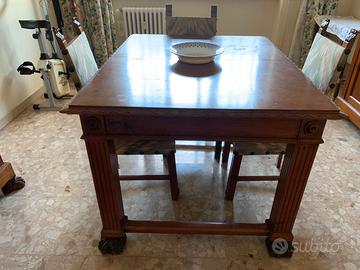 Vendo splendido tavolo da pranzo antico realizzato in legno pregiato, con finiture originali. Ideale per chi ama l’arredamento classico e gli oggetti di valore. Struttura solida, superficie ben conservata, pronto per essere utilizzato o esposto come elemento d’arredo. Il Tavolo è apribile e di conseguenza allungabile. Prezzo: 500 euro Ritiro a mano in zona: Roma (Piazza Pio XI
