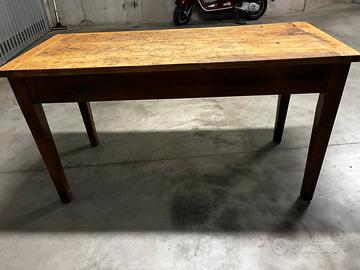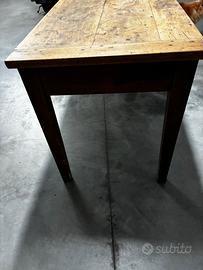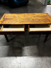 Tavolo antico epoca 800’ in abete massello solido e robusto conserva i segni del tempo con due cassetti rivestiti fondi come la profondità del piano misura lunghezza 150 cm altezza 80 cm profondità 65 ritiro in loco a cura dell’acquirente