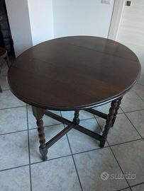 Vendo tavolo antico pieghevole e sedie rustiche dello stesso colore accoppiate come da foto, in buono stato ma che mostrano graffi sul piano e segni di usura del tempo. Un trattamento di lucidatura dovrebbe essere sufficiente a eliminare le tracce presenti. Spedizione non prevista. Di seguito le misure: